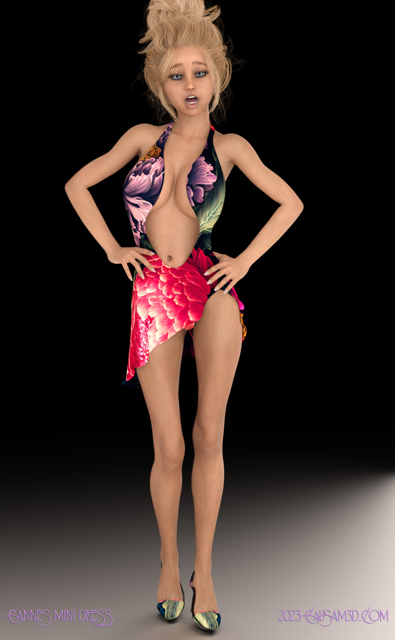 Cannes Mini Dress Set for Genesis 8 Female is a short reactive dForce dress designed from the ground up for BOTH animations and still renders. Perfect for any renders where your character's pose suggests motion, or of course for animations. This set includes the dress, a pair of heels with a foot pose preset, and a C-String panty.