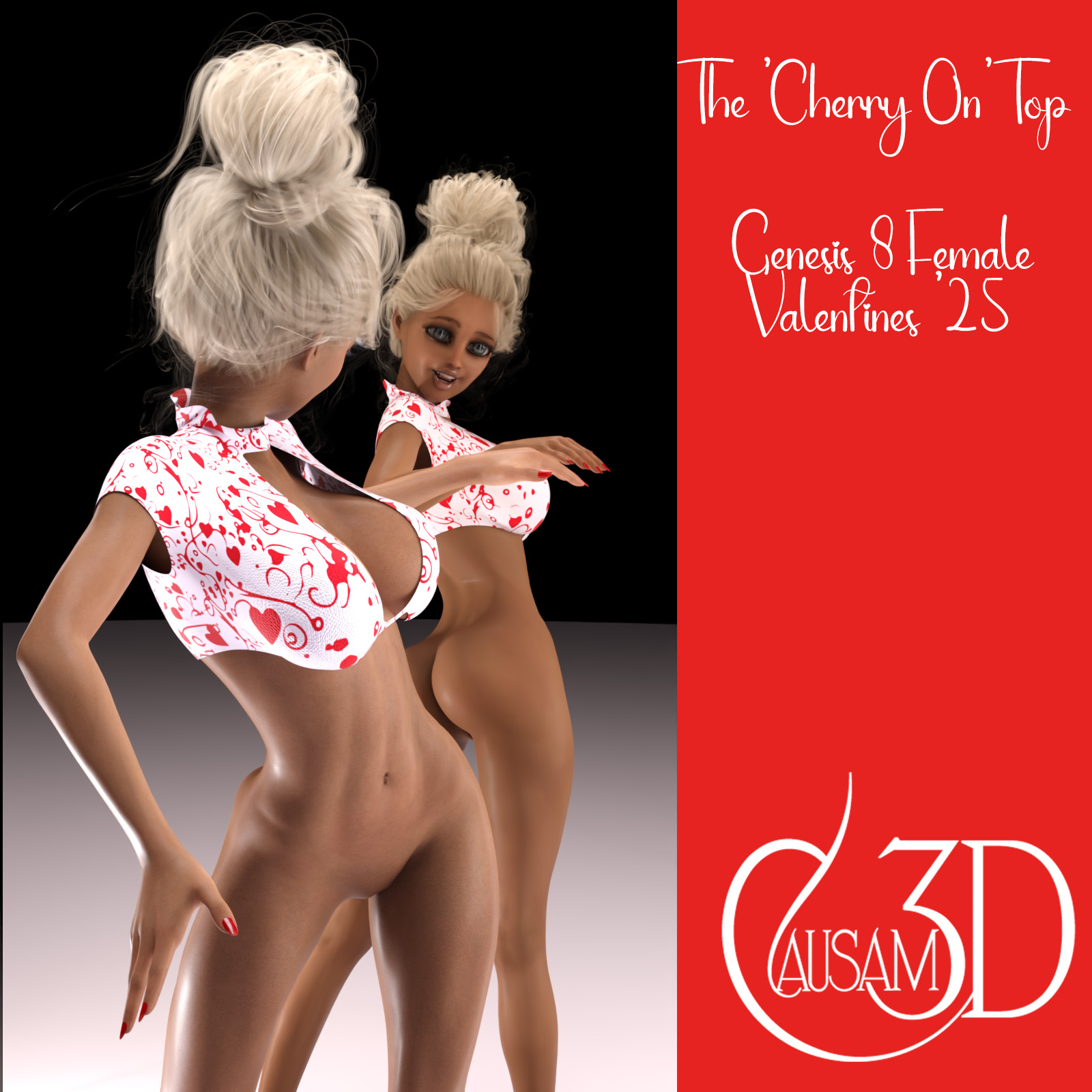 Get ready to turn heads with the Cherry On Top for Genesis 8 Female! This sassy, flirty top is perfect for hot nights, cool events and fun times. Made with reactive dForce, the garment flows and moves with your Genesis 8 3D female character. Whether she's going on a hot date or just having a cocktail with friends, this garment will make her appear confident, stylish and modern. Don't miss out on this must-have addition to your Daz Studio wardrobe. Get your Cherry On Top for Genesis 8 Female today! The Cherry On Top is the latest in conforming top designs from Causam3D. It is inspired by updating the look of animated sitcoms of the 1960s. You may have seen videos on YouTube which use AI to achieve these effects. Nothing artificial here, this outfit was created by Causam3D with pure, Authentic Intelligence. Simplicity is our by-word. Reactive dForce ensures that your garments will behave properly, free of explosions in any realistic circumstance. The top features a collar design and open neckline with short sleeves. Finding Your Product People >>> Genesis 8 Female >>> Clothing >>> Causam3D >>> Cherry On Top TO USE: 1. Load the garment(s) onto your character. TIP: When using a dForce wind node with this garment, keep the wind speed to a minimum, say five or ten miles per hour and set the scene gravity to either "zero" or something very low like .05. This allows the material to flow and assume a natural shape without risking explosion or coming completely off the character. |