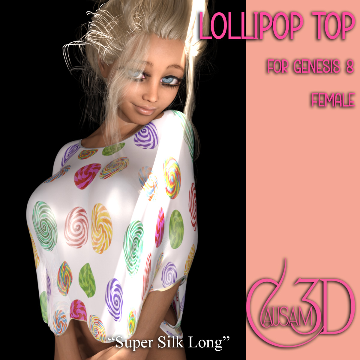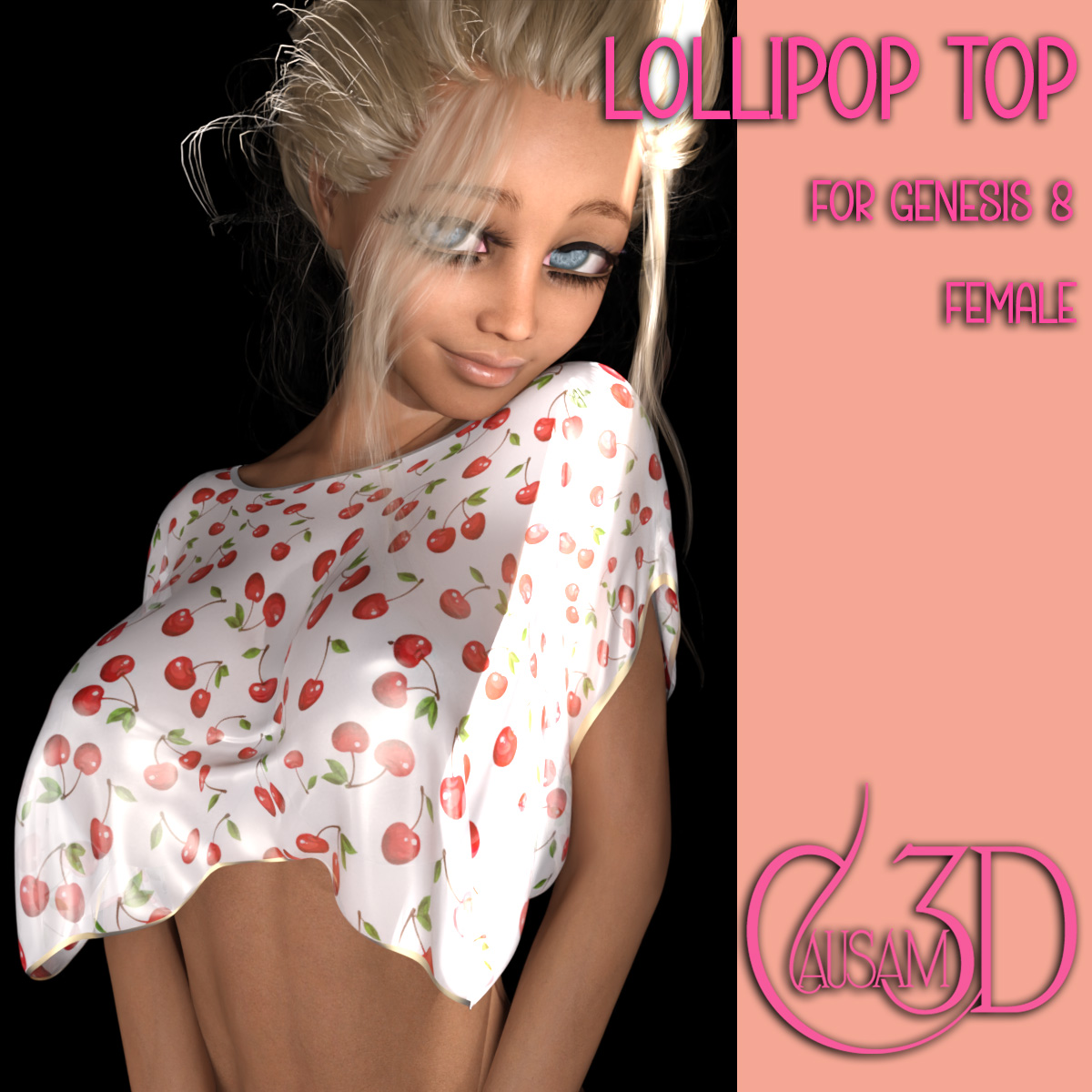 Get ready to turn heads with the Lollipop Top for Genesis 8 Female! This sassy, flirty top is perfect for hot nights, cool events and fun times. Made with reactive dForce, the garment flows and moves with your Genesis 8 3D female character. Whether she's going on a hot date or just having a cocktail with friends, this garment will make her appear confident, stylish and modern. Don't miss out on this must-have addition to your Daz Studio wardrobe. Get your Lollipop Top for Genesis 8 Female today! The Lollipop Top is the latest in flowing/conforming top designs from Causam3D. It is inspired by updating the look of spicy television shows from the 1980s. You may have seen videos on YouTube which use AI to achieve these effects. Nothing artificial here, this outfit was created by Causam3D with pure, Authentic Intelligence. Simplicity is our by-word. Reactive dForce ensures that your garment will behave properly, free of explosions in any realistic circumstance. The top features a collection of dForce presets which will cause three distinct shaping behaviors: dForce presets: Iray Materials: Finding Your Product People >>> Genesis 8 Female >>> Clothing >>> Causam3D >>> Lollipop Top TO USE: 1. Load the garment(s) onto your character. TIP: When using a dForce wind node with this garment, keep the wind speed to a minimum, say five or ten miles per hour and set the scene gravity to either "zero" or something very low like .05. This allows the material to flow and assume a natural shape without risking explosion or coming completely off the character. Ownership Statement: |