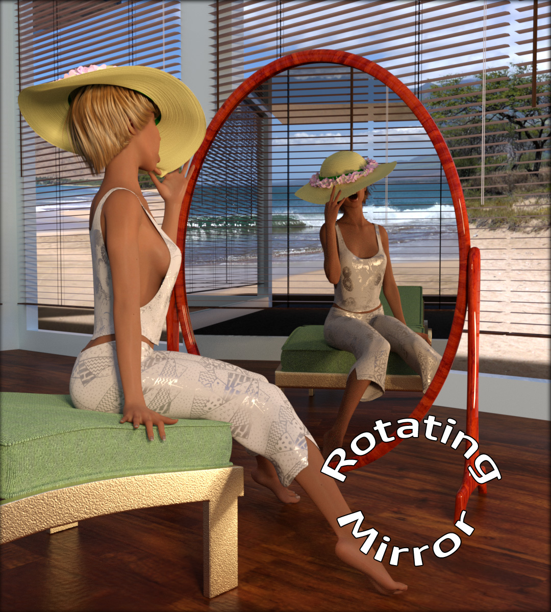 Included in this package: 1 Subset with the mirror parented to the stand 1 Stand 1 Mirror INSTALLATION INSTRUCTIONS: Unzip into your Daz Studio Content directory. TO USE: 1. Load the mirror subset into your scene. 2. Place it where you want. 3. Select the mirror (not the stand or subset). 4. Rotate it using the "Rotate Mirror" Slider. Tips: To scale the mirror simply use the scaling sliders provided in Daz. The mesh is pretty dense, and so withstands this with no problems. To hang the mirror on a wall, etc., simply load the mirror (not the subset) and place it where you want it. |