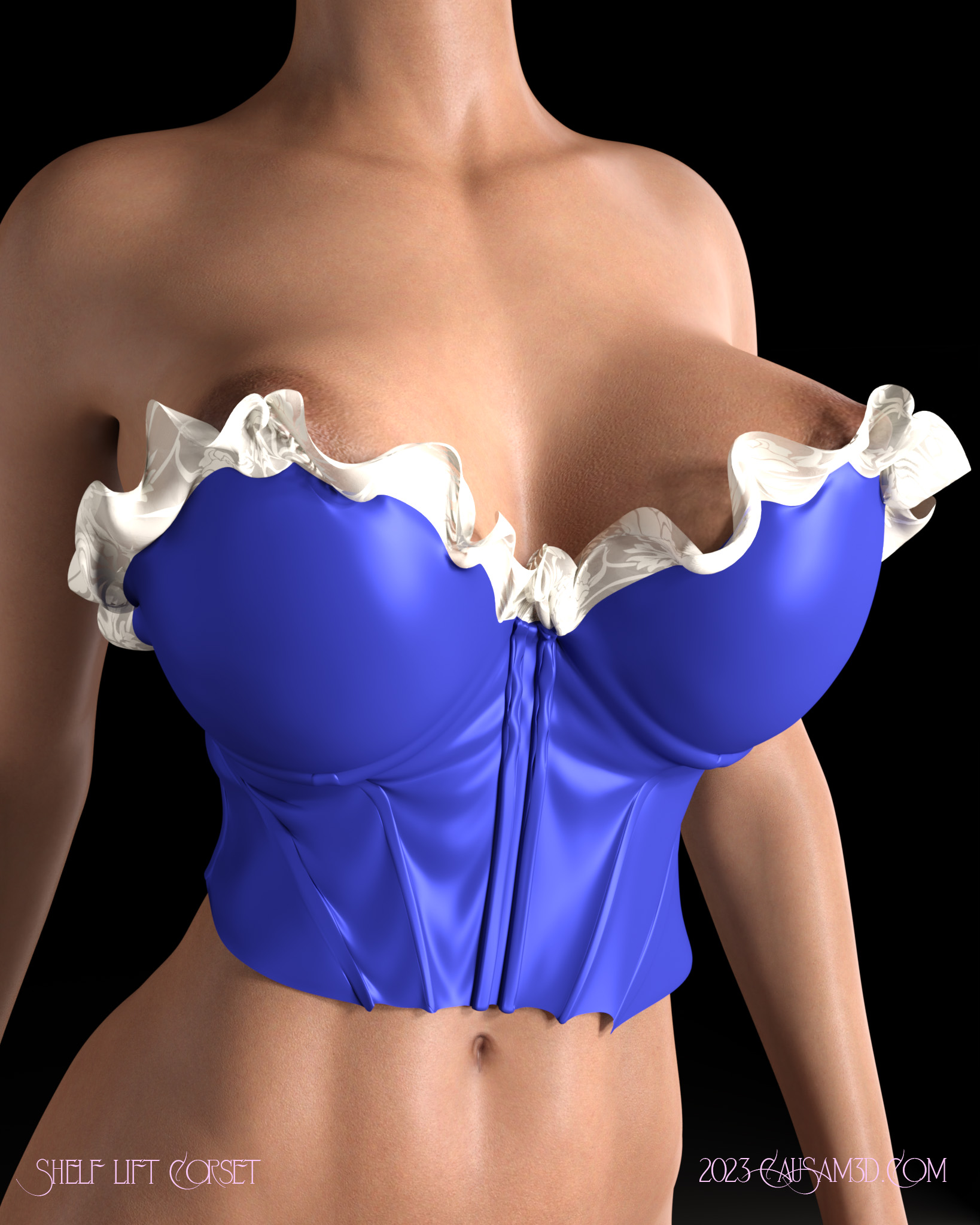 Elevate your 3D characters' style with the Shelf Lift Corset. Inspired by Victorian elegance, this dForce clothing article enhances the bust and features a delicate lace trim. Designed for Daz Studio Genesis 8 Female, it adds a touch of retro charm to any scene. Get ready to elevate your renders with this stunning lingerie piece.