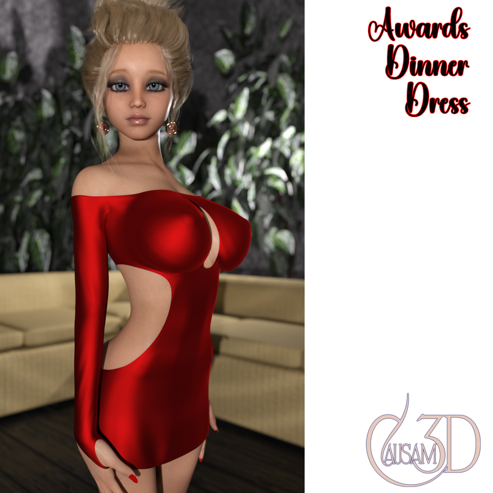 Get ready to turn heads with the Awards Dinner Dress for Genesis 8 Female! This light weight sheer and flirty dress is perfect for hot days. Made with reactive dForce, the dress flows and moves with your Genesis 8 3D female character. Whether she's going on a day date or just having a cocktail with friends, this dress will make her appear confident and stylish. Don't miss out on this must-have addition to your Daz Studio wardrobe. Get your Awards Dinner Dress for Genesis 8 Female today! The Awards Dinner Dress is the latest in conforming dress designs from Causam3D. The dress features an open cleavage area which is nonetheless modest enough for PG renders. The arms are asymmetrical in design giving a standout look to your character. The skirt and bodice have openings both on the right side the left hip giving the dress a daring tease. Awards Dinner Dress comes with a wide variety of materials and three different presets for simulations. As always, our Poke Through Fix morph is included. TO USE: 1. Load the dress onto your character. TIP: When using a dForce wind node with this dress, keep the wind speed to a minimum, say five or ten miles per hour and set the scene gravity to either "zero" or something very low like .05. This allows the material to flow and assume a natural shape without risking explosion or coming completely off the character. Ownership Statement: |