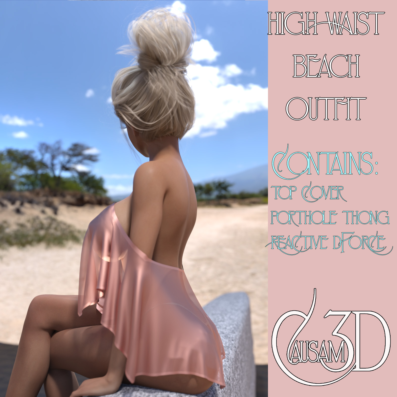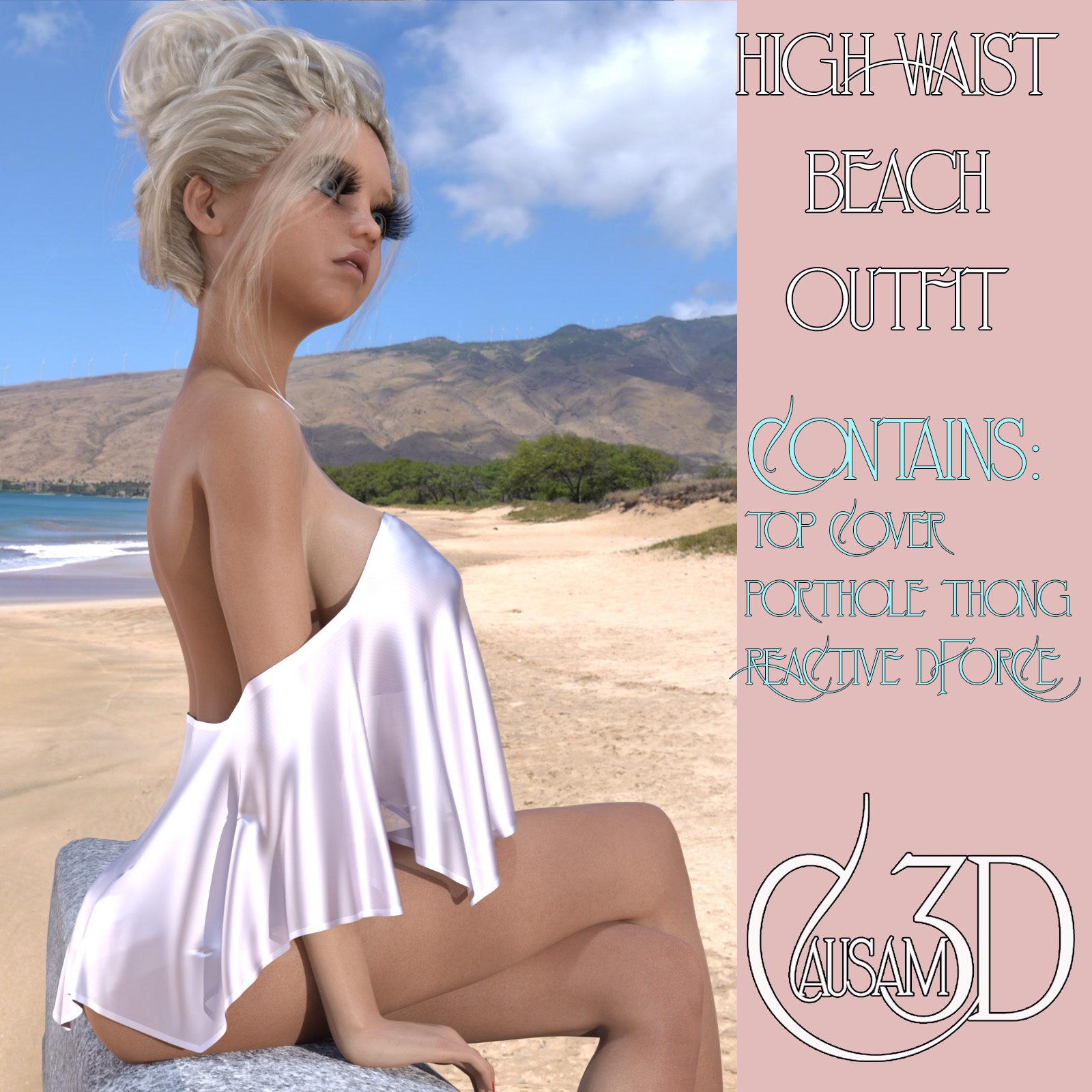 High Waist Beach Outfit for Daz Studio Genesis 8 Female