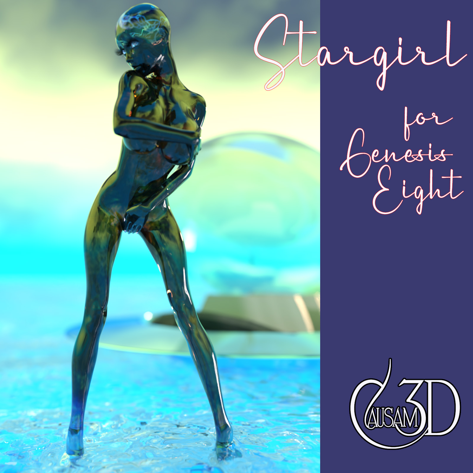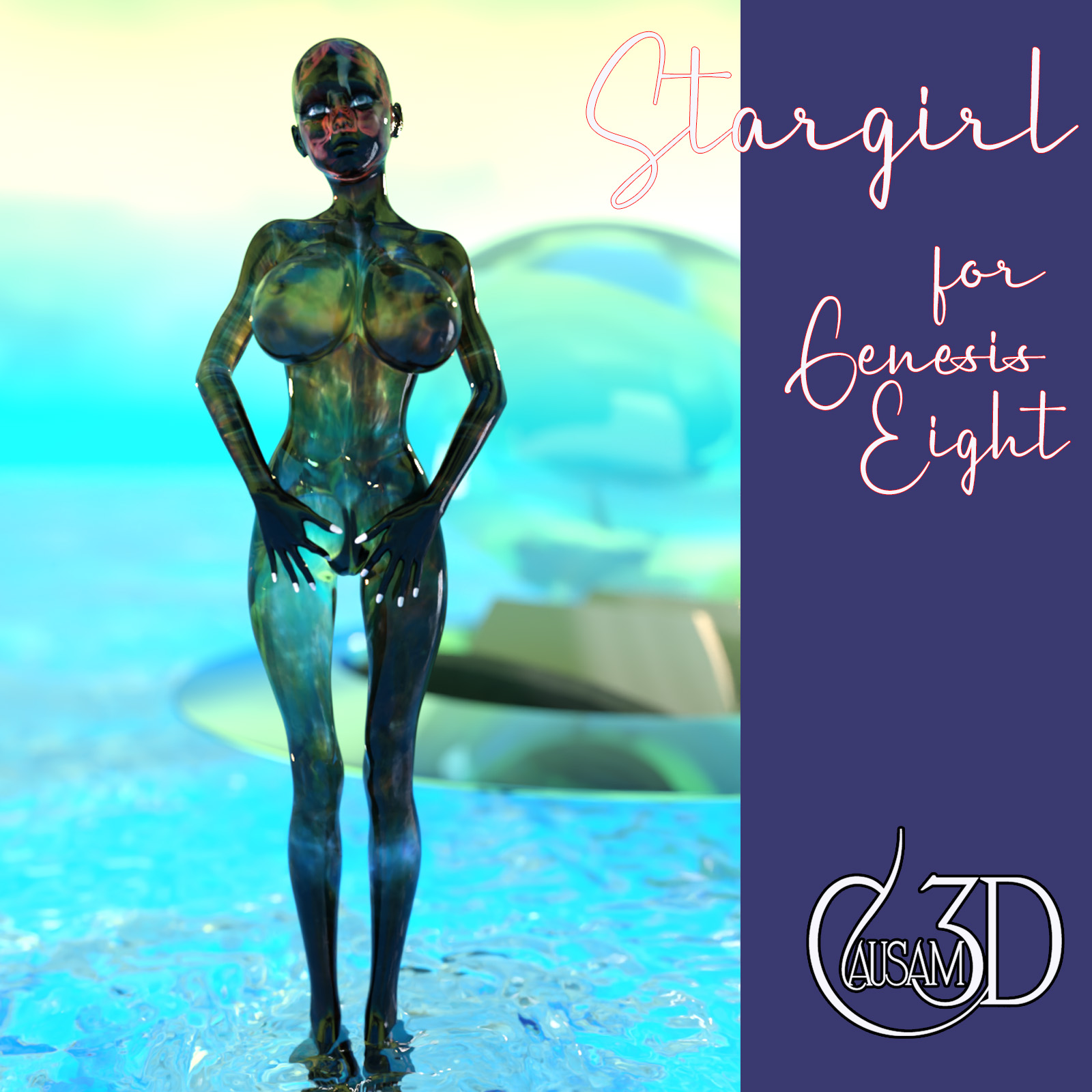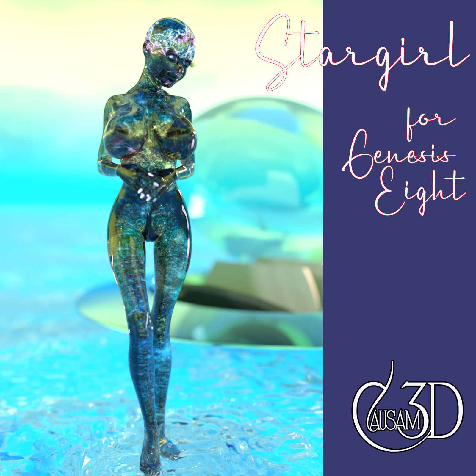 Stargirl is a material and UV set for Daz Studio Genesis 8 and 8.1 female. It converts either your existing G8F character by loading the UV set with the provided icon, or allows you to load a fresh character in the shape of the base female with the UV set already applied. In either case, you are free to use any of your existing Daz Studio character morphs, clothing, props etc. OPTION ONE; Use on your existing character: 1) Choose your character in the scene file you have opened, and under the Stargirl Materials folder, click the icon for loading the Stargirl UV. This will convert your character's UV set to Stargirl. 2) With your character selected choose any of the five material presets available. There is also an "overlay" called Europa which paints a galaxy onto your character's skin and illuminates it. Note that this overlay works only with the Stargirl UVs. OPTION TWO; Use the provided Stargirl figure: 1) Load either the Stargirl_80 (Genesis 8.0) or Stargirl_81 (Genesis 8.1) into your scene. This will load with the SG-1 mat by default. 2) You may now load any Stargirl material set you want onto your Stargirl figure. You may also use any Genesis 8 or 8.1 female asset to include character morphs, shaping presets, or any other asset for Genesis 8 female to include props or clothing on the figure. FINISHING TOUCHES: The fingernails and toenails have been left base white. You are free to use any makeup or base nails material preset from any of your Daz asset folders for this. The same goes for the eyes. We load Stargirl mats with an alien looking eye preset, but any Genesis 8 or 8.1 female eye material will work just fine. Those surfaces and UVs, both the nails and eyes, are standard Daz Studio Genesis 8.X female. |