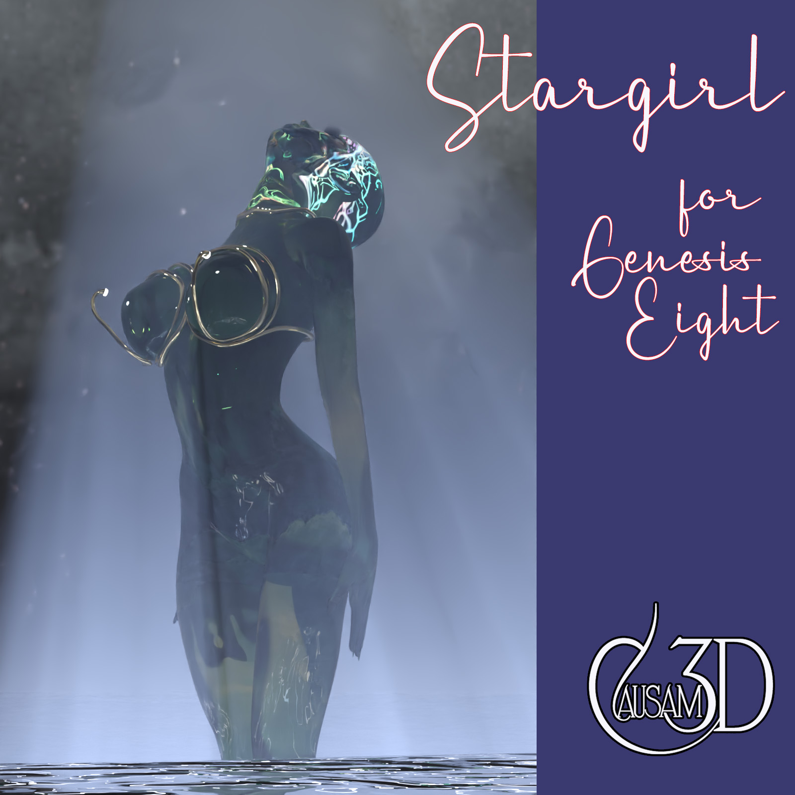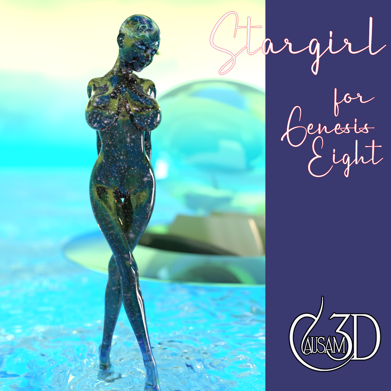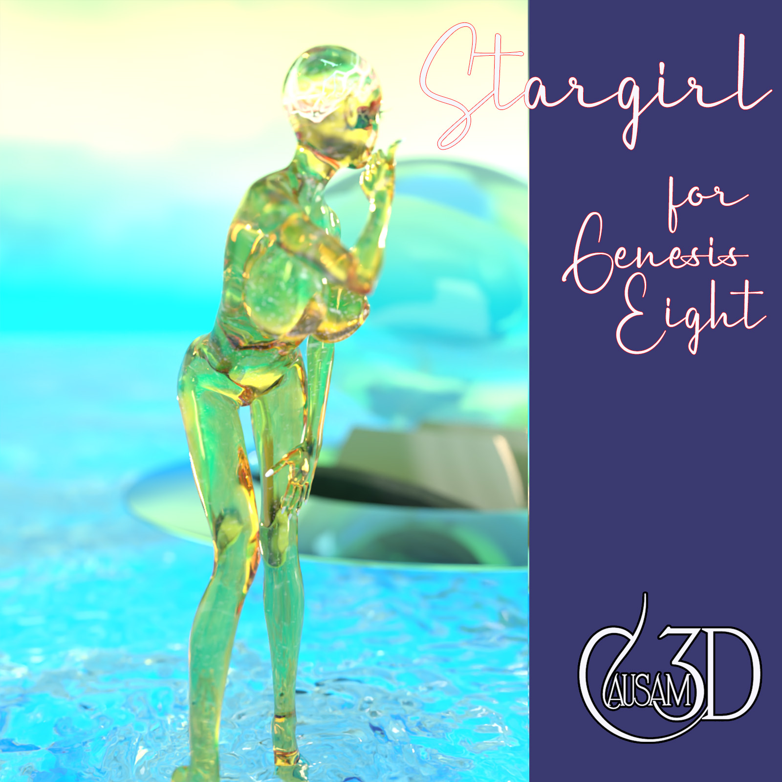 Stargirl is a material and UV set for Daz Studio Genesis 8 and 8.1 female. It converts either your existing G8F character by loading the UV set with the provided icon, or allows you to load a fresh character in the shape of the base female with the UV set already applied. In either case, you are free to use any of your existing Daz Studio character morphs, clothing, props etc. OPTION ONE; Use on your existing character: 1) Choose your character in the scene file you have opened, and under the Stargirl Materials folder, click the icon for loading the Stargirl UV. This will convert your character's UV set to Stargirl. 2) With your character selected choose any of the five material presets available. There is also an "overlay" called Europa which paints a galaxy onto your character's skin and illuminates it. Note that this overlay works only with the Stargirl UVs. OPTION TWO; Use the provided Stargirl figure: 1) Load either the Stargirl_80 (Genesis 8.0) or Stargirl_81 (Genesis 8.1) into your scene. This will load with the SG-1 mat by default. 2) You may now load any Stargirl material set you want onto your Stargirl figure. You may also use any Genesis 8 or 8.1 female asset to include character morphs, shaping presets, or any other asset for Genesis 8 female to include props or clothing on the figure. FINISHING TOUCHES: The fingernails and toenails have been left base white. You are free to use any makeup or base nails material preset from any of your Daz asset folders for this. The same goes for the eyes. We load Stargirl mats with an alien looking eye preset, but any Genesis 8 or 8.1 female eye material will work just fine. Those surfaces and UVs, both the nails and eyes, are standard Daz Studio Genesis 8.X female. |